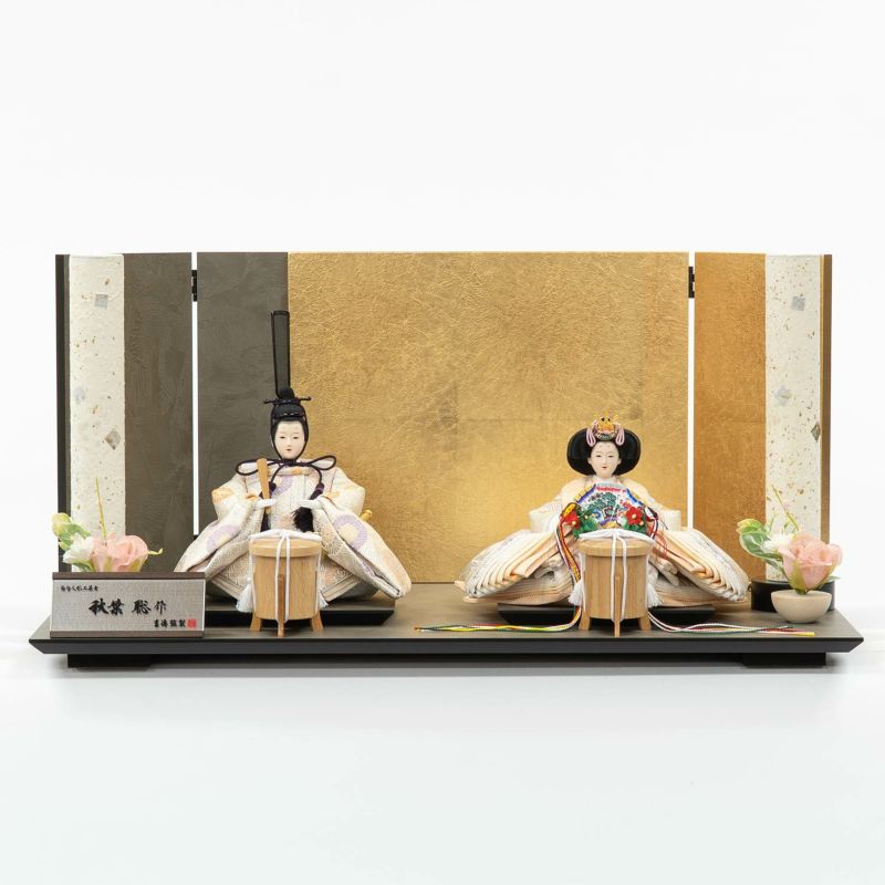 和紙に箔を用いた三曲屏風がより美しい色合いのお人形を引き立てます。